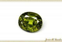 宝石質の結晶が発見されたのがイタリアのベスビオ火山ということで、 ベスビアナイトとも呼ばれるアイドクレース。 オリーブグリーンに輝き、透明感もよく、テリもよい一石です。 カットによってライトグリーンにキラキラと輝きを増すこのストーンは アイドクレースという希少石の中でも美しい彩を持った一石です。