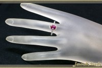 色鮮やかな非加熱ルビーリングのご紹介です 世の中のルビー・サファイア、いわゆる、コランダムストーンに関しては 加熱処理が施されて世の中に流通します。これは女性で言うお化粧の様な物で、 石が持つ本来の魅力を 最大限引き出す方法として広く認知されています。 しかし、今回ご紹介するルビーは その、”加熱処理”が施されていない、 非加熱結晶で、カットのみが施された一石です。 天然石特有の内包物が存在して当たり前の宝石ですが、きわめてクリーンな高品質結晶です。 大きさも1CTを超える大きさで、大変ボリュームがあります。 しかも、カラーはとても美しく、目を引く存在です。、 私共の説明など必要なく、自らが高品質であることをアピールして参ります。 そして、印象的なダイヤモンドの取り巻きは印象深く、 女性的なカラーリングと、ジュエリーとして、魅力があふれ出るリングです。 きわめて鮮やかな発色を放つ非加熱ルビー。 注目のリングをお見逃しなく!!